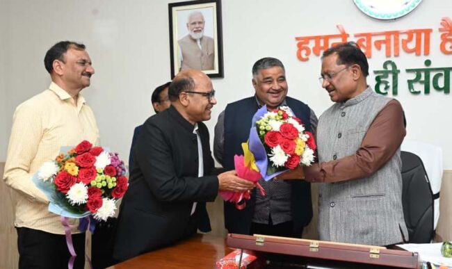 छत्तीसगढ़ के पर्यटन एवं संस्कृति मंत्री श्री राजेश अग्रवाल ने आज मुख्यमंत्री श्री विष्णुदेव साय से शिष्टाचार भेंट कर राजिम कु